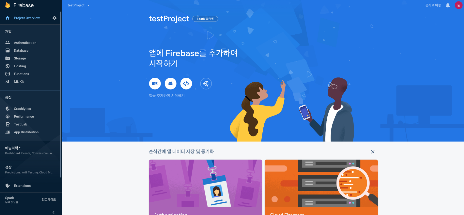 5. 이 화면이 나온다면 Firebase 프로젝트를 만드는 것에 성공한 것이다.