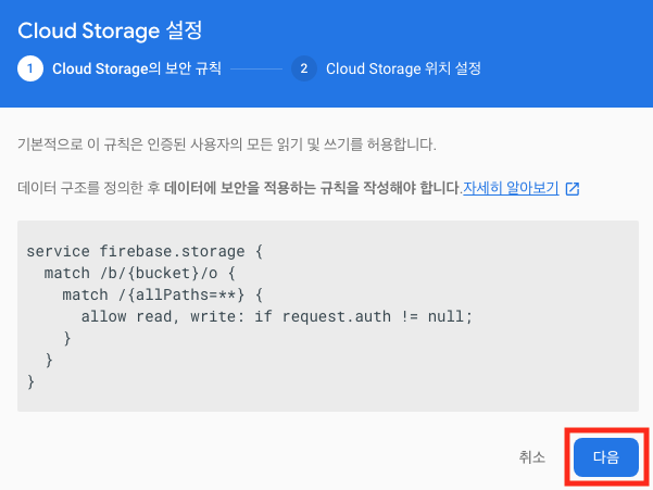 Blaze 요금제를 사용하는 고객은 추가 버킷을 사용할 수 있다. 는 설명이 왼쪽 아래에 써있다.