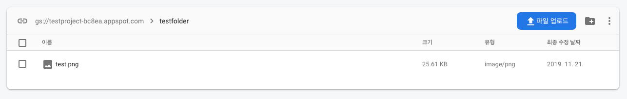 위와 같이 testfolder 폴더 안에 test.png 라는 이름으로 이미지가 업로드가 된다.