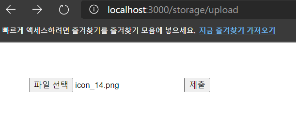1. http://localhost:3000/storage/upload 에 접속한 후 이미지를 업로드한 후 [제출] 를 눌러 이미지를 Firebase Storage 에 업로드한다.