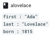 사용자 alovelace 를 나타내는 문서는 다음과 같다.