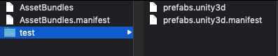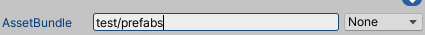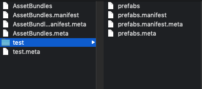 위와 같이 test/prefabs로 설정할 경우 아래와 같이 test 폴더 아래에 prefabs 라는 에셋 번들이 생긴다.
