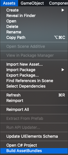 Assets-Build AssetBundles 항목이 생긴것을 확인할 수 있다.. 빌드를 하기전 먼저 BuildPipeline.BuildAssetBundles에 대해 알아보자.