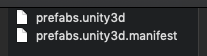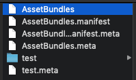 인제 Assets > Build AssetBundles 로 에셋빌드를 하면 에셋 번들 디렉토리에 2*(n+1)개의 파일이 더 있을 것이다. 에셋번들의 이름으로된 파일과 에셋번들 이름 + ".manifest" 로 파일이 생성된다.