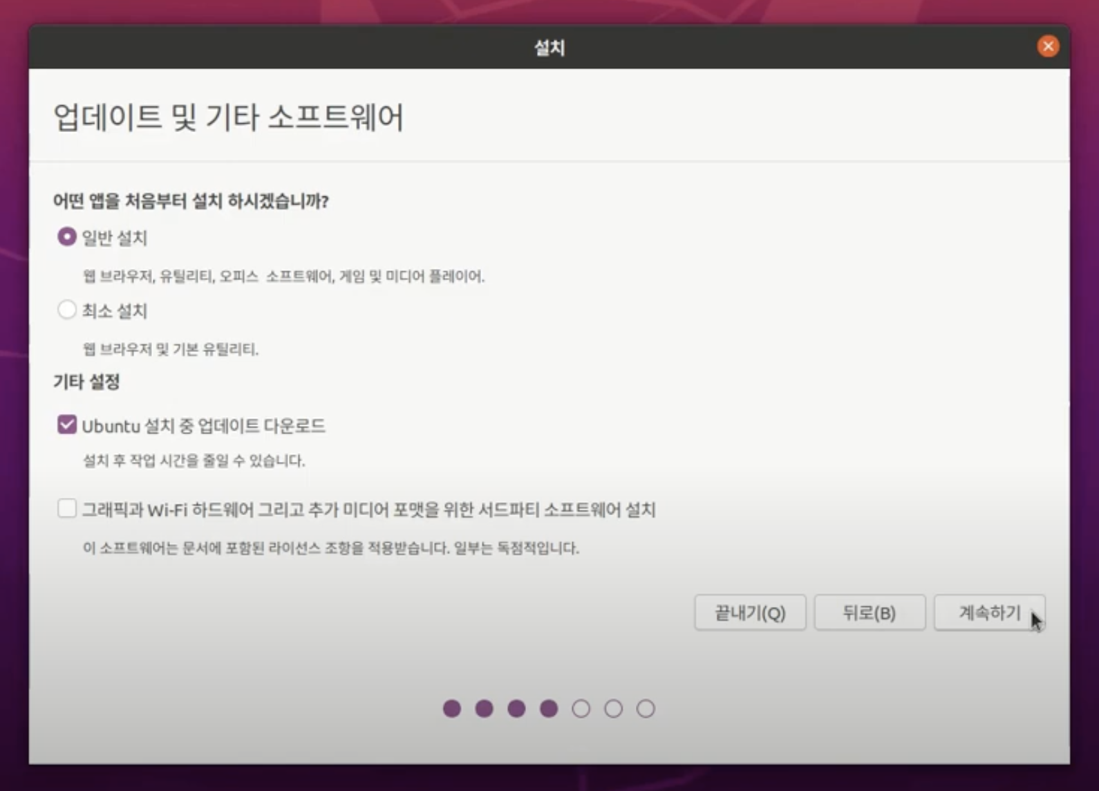 다음에는 어떻게 우분투를 설치할 것인지 물을텐데
