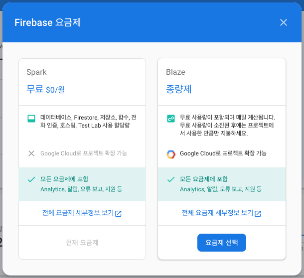 종량제 요금제를 선택해야지 Functions 기능을 사용이 가능하게 변경되었다.