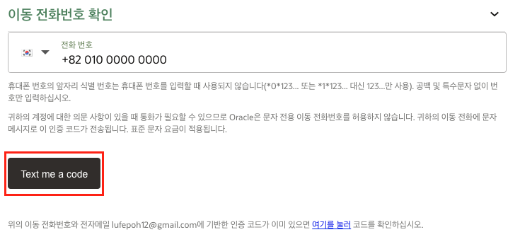 전화번호도 입력하고 code를 받아 코드 인증을 해준다.