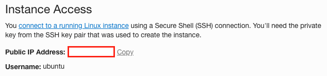 Instance Access 에 있는 Public IP Address 로 ssh 접속을 한다.