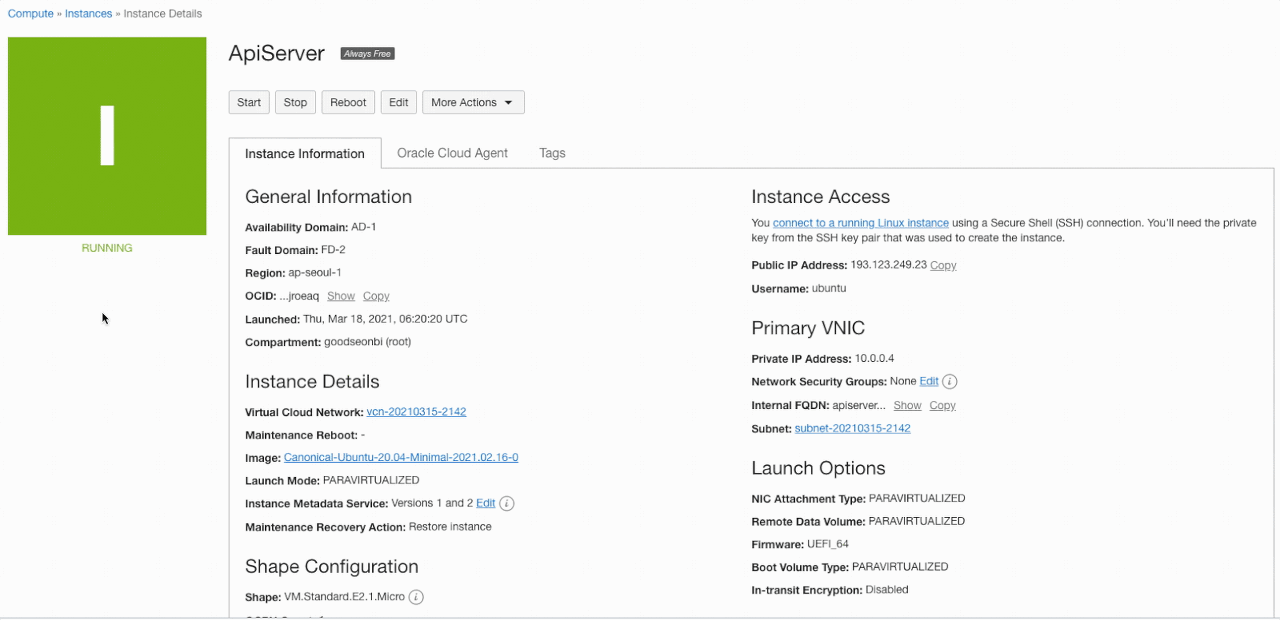 | 오라클 클라우드에서 Ubuntu 인스턴스 서버 생성하기 (0) | 2021.04.03 |