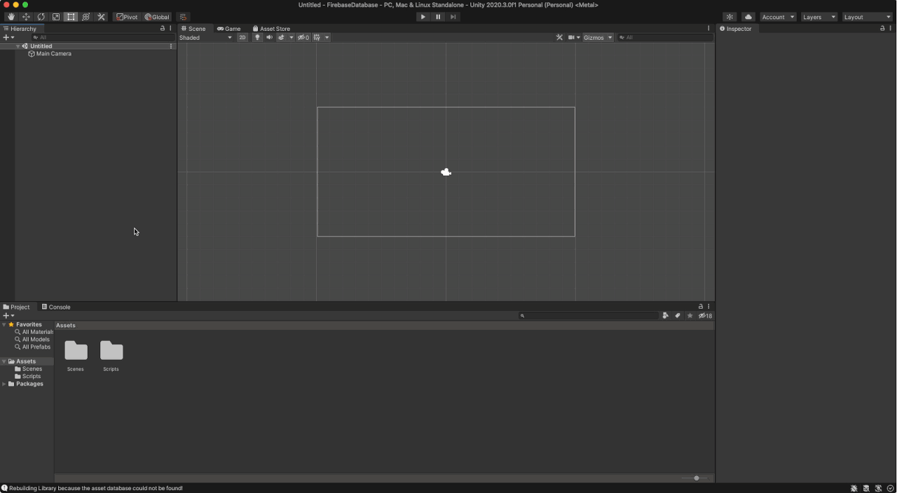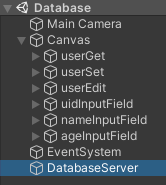 예제 프로젝트를 연 후 Scenes 폴더를 열고 Database.scene 을 실행한다.