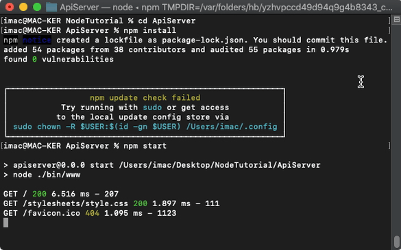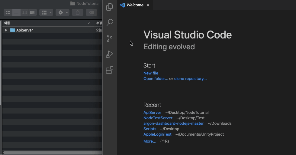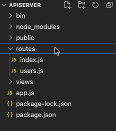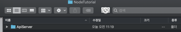 위의 명령어를 실행하면 아래와 같이 NodeTutorial 폴더 안에 ApiServer 폴더가 생긴다.