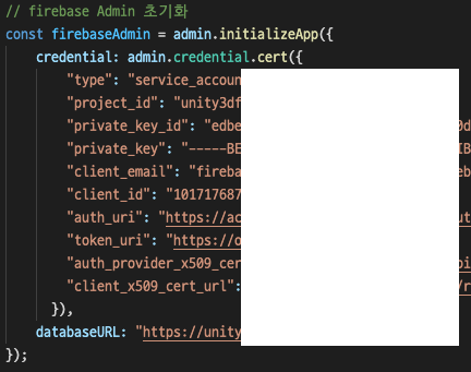 db.js 에 다운로드 받은 firebase admin sdk key 을 넣어준다.