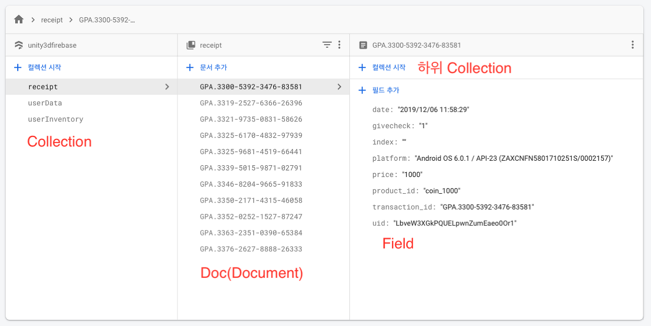 진행하기 전에 서버에서 사용할 DB(Cloud Firestore) 의 구조부터 파악하자.