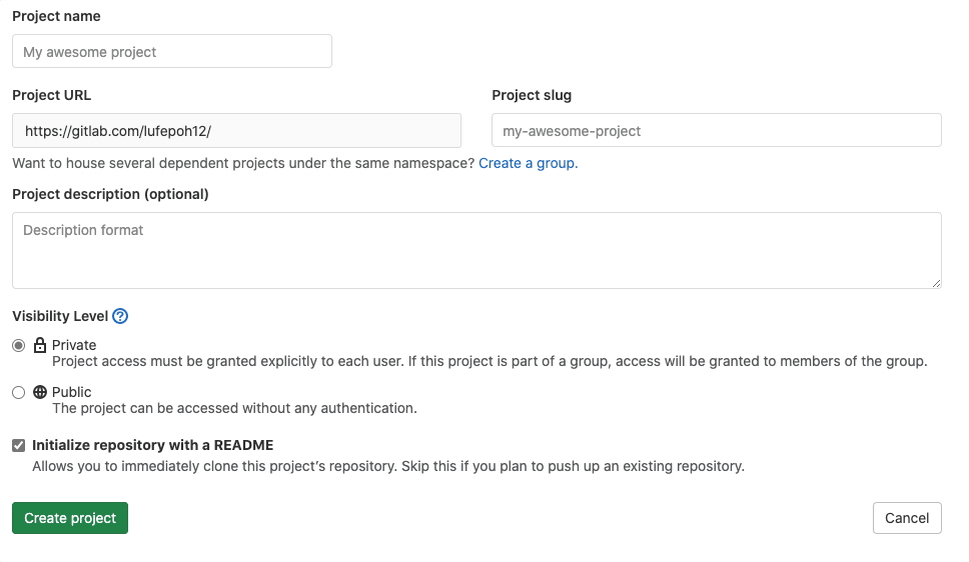 $ git remote add origin https://gitlab.com/자신의아이디/자신의저장소이름.git