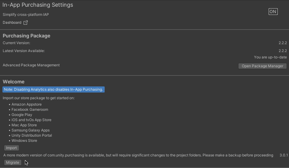 그리고 아래에 좀 더 현대적인 com.unity.purchasing 을 사용 할 수 있다는 말이 있다.